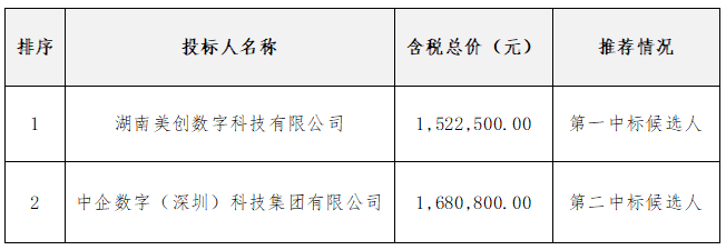 根据招标文件的规定,评标委员会根据最终评审的结果,推荐两名中标候选人,根据综合得分由高到低排名,综合得分第一名为第一中标候选人,综合得分第二名为第二中标候选人。