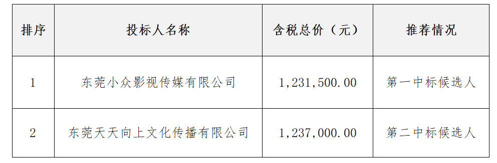 广东省南方文化产权交易所股份有限公司受广东南方日报经营有限公司的委托,就2025文化产品展示活动策划服务项目进行公开招标。经过评标委员会的评审和推荐,并经招标人确认,现公示本项目的中标候选人: